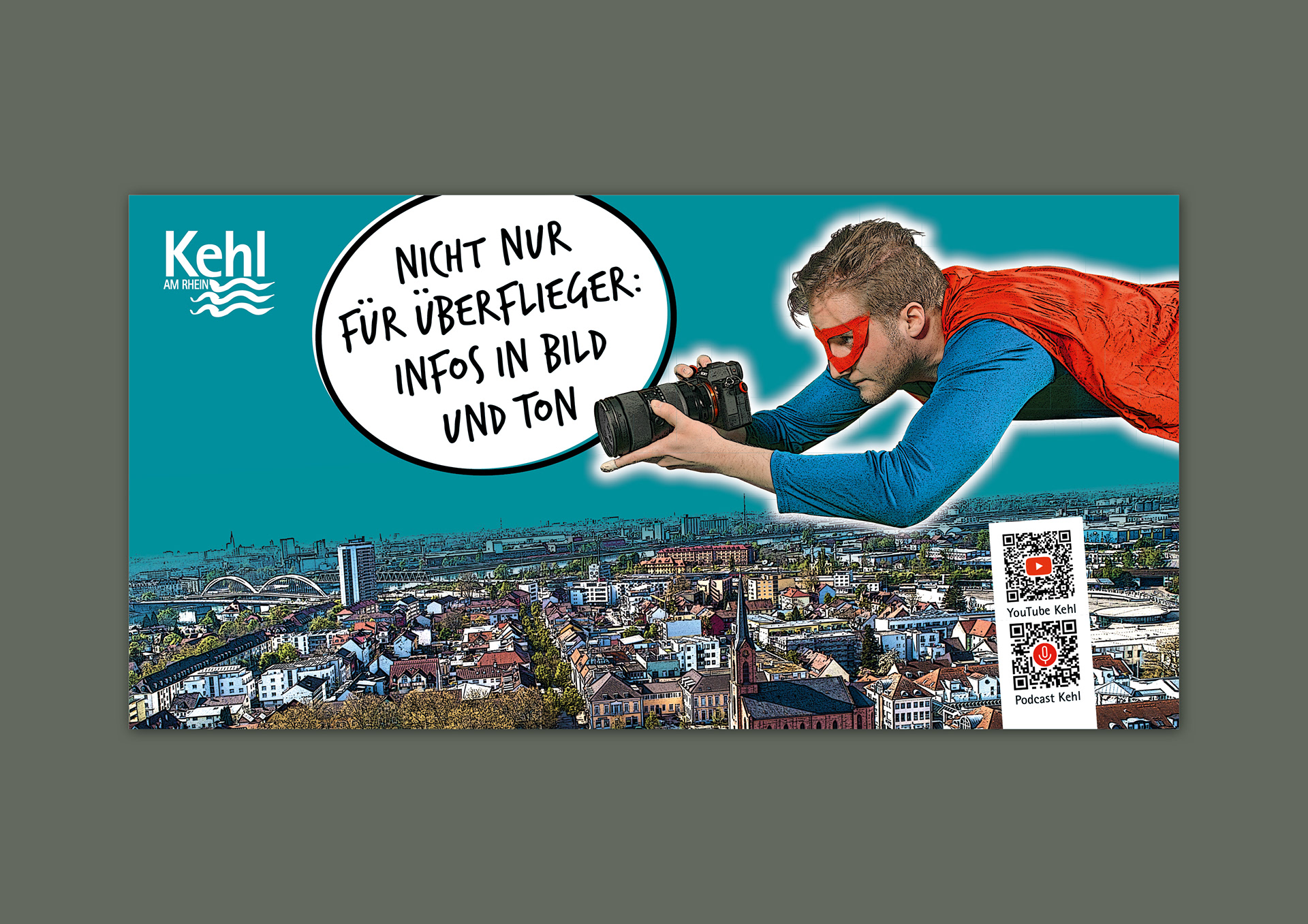Superhelden-Bauzaunbanner für den Kehler YouTube-Kanal und Podcast: Pressestelle Stadt Kehl