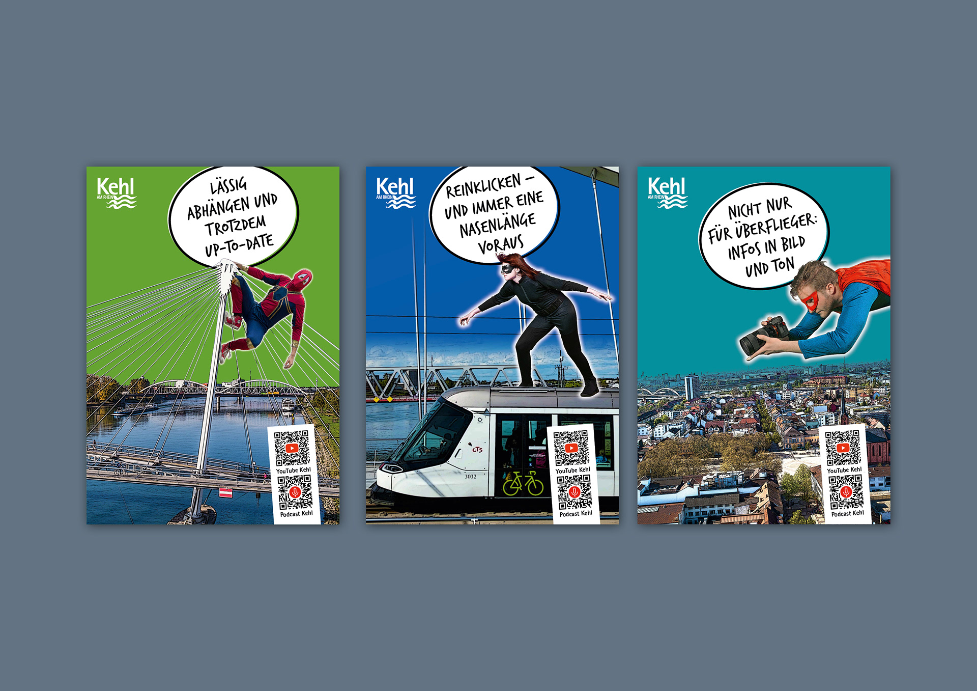 Superhelden-Plakate für den Kehler YouTube-Kanal und Podcast: Pressestelle Stadt Kehl