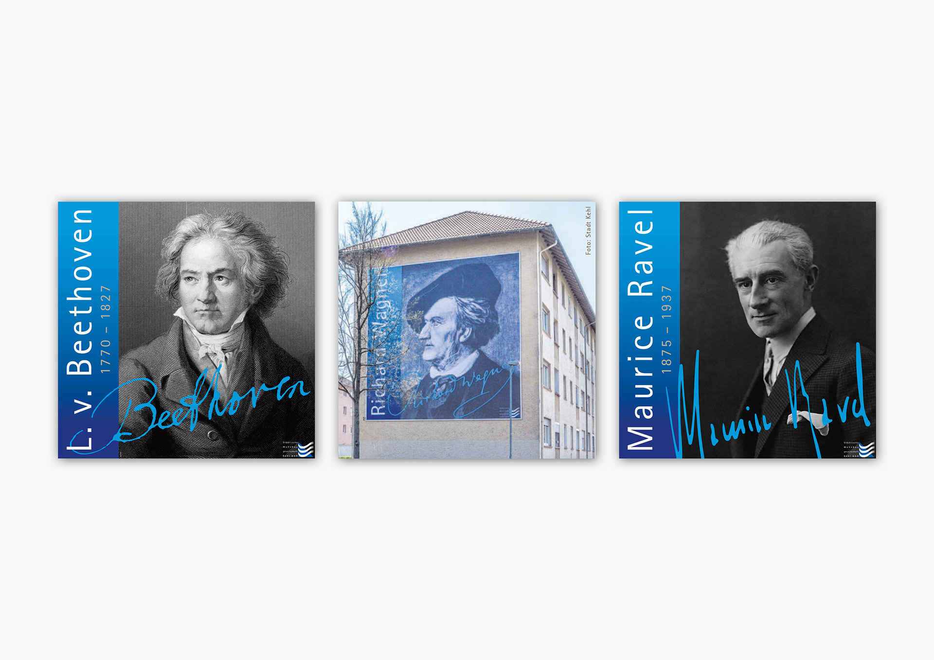 Großplakate (8 x 8 Meter) für noch nicht sanierte Wohnblocks: Städtische Wohnbau Kehl